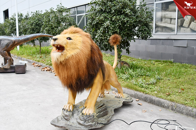 仿真獅子模型,長1.7米,中140公斤,能張嘴叫、抬頭、尾巴動等動作,主要用于景區、動物園、游樂場等場所!