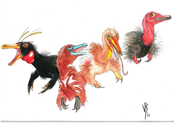 阿爾瓦雷斯龍類代表性物種復原圖,展現了前肢的有趣的演化歷程。ViktoRadermacher/繪