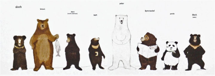在北極生活的北極熊平均體型大于棕熊,而棕熊的體型又大于馬來熊。