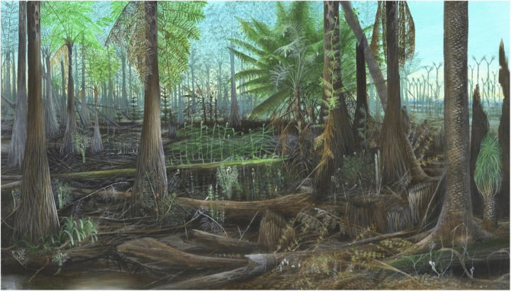 3億年前的地球,植物剛剛從海洋走上陸地,演化出了木質化的維管組織,不僅能實現水分與營養物質的運輸,也起到了一定的支持作用。