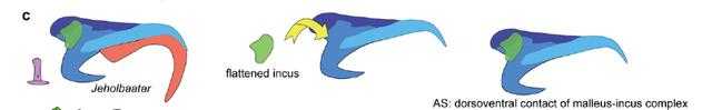 有了這兩種驚人的發現,說2019年時哺乳類進化研究的奇跡之年也不為過,此外,對蓋氏熱河俊獸高精度CL還有個意外發現,就是上隅骨在熱河俊獸中處于從一塊獨立的骨骼逐漸變成與錘骨體愈合的狀態,成為錘骨的后外側部分,這為中耳骨骼的同源性討論提供了重要證據。最后值得一提的是這兩種早期哺乳類都是在我國發現的,其實不只2019年,今年來我國的早期哺乳類研究獲得了很多重大突破,相信不久的未來還會有新的驚喜。