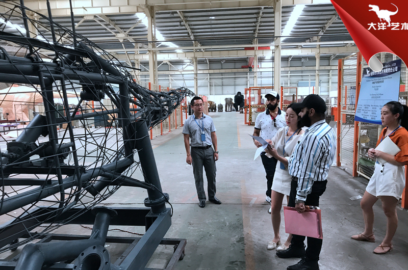 2019年5月,立陶宛客戶到廠參觀,定制一批恐龍化石,與負責人合影留念。