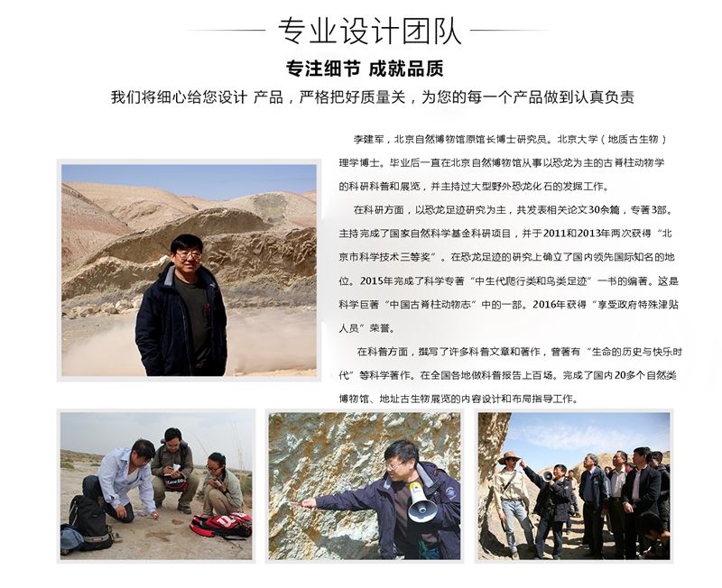 6.為了保證恐龍展品的效果,本公司特別聘請了中國科學(xué)院古脊椎研究所的教授和自貢恐龍博物館的恐龍專家作科學(xué)顧問,他們將會(huì)監(jiān)督恐龍展品制作的全過程 。