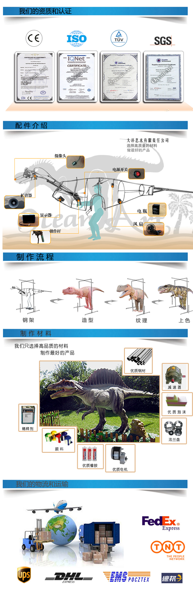 動 作:人穿在恐龍身體里面,控制恐龍動作