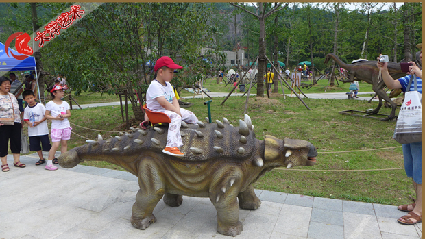 動 作:投幣后觀眾,張嘴叫聲、頭左右、四肢走動(方向盤控制)、尾左右擺動。背上可騎坐小孩隨龍走動娛樂