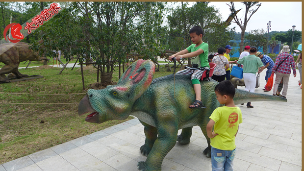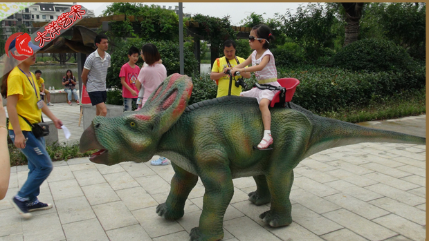 動 作:投幣后觀眾,張嘴叫聲、頭左右、四肢走動(方向盤控制)、尾左右擺動。背上可騎坐小孩隨龍走動娛樂