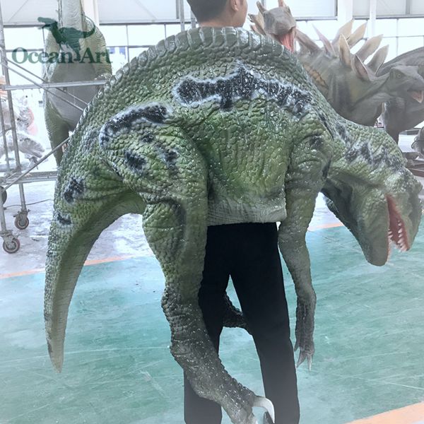 1.人控恐龍分為藏腿或露腿兩種設(shè)計(jì),服裝長約4米,重20千克。藏腿恐龍服在腿和腹部處有一條拉鏈,當(dāng)操作者穿好后,拉上拉鏈便可完全遮住身影;露腿恐龍服則會(huì)把操作者雙腿露在外面。尾部有一條可抽出的長桿,便于裝箱運(yùn)輸。另外,我們會(huì)提供一個(gè)支撐架,方便擺放恐龍服裝。