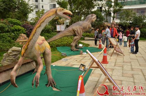 據(jù)了解,本次恐龍展是省內(nèi)規(guī)模最大、科技含量最高的一次,共有三疊紀(jì)、侏羅紀(jì)、白堊紀(jì)三個時期的56只仿真恐龍亮相,分5個展區(qū),其中第五展區(qū)位于水木花園最上面,是5個展區(qū)中唯一一個恐龍架展區(qū),最長最大的馬門溪龍骨架長22米,高8米,吸引著眾多游客的眼球,備受青睞。這樣的展出,在提供觀賞的同時,為廣大兒童和青少年送上了一道科普大餐。