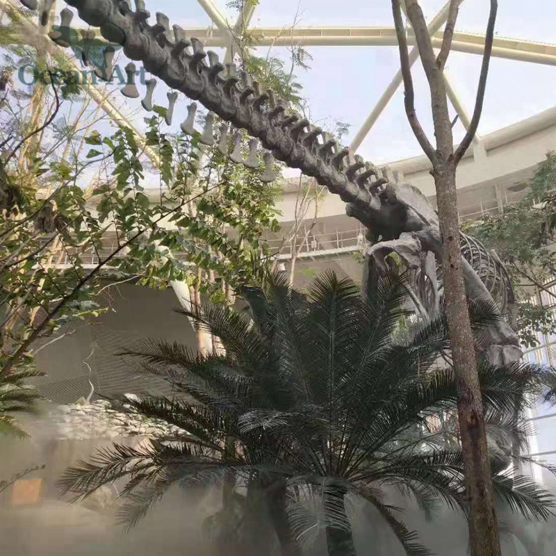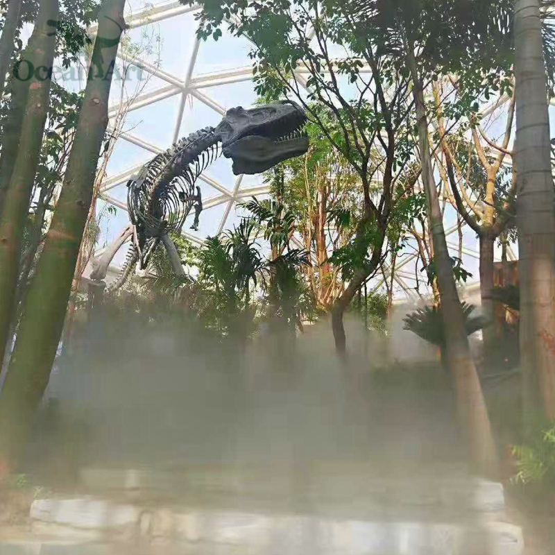 此次活動的植物館建筑分為三層,一層設有熱帶植物溫室,占地約3000平方米,匯聚600多種珍貴植物。我司在展館中展示的巨型仿真恐龍骨架在周圍珍惜植物的映襯下顯得栩栩如生,給人仿佛回到侏羅紀的視覺沖擊感!展館通過一系列高科技創意手法,向參觀者充分展示“植物的智慧”,呼喚人類保護植物,關愛地球,關注人類的未來。